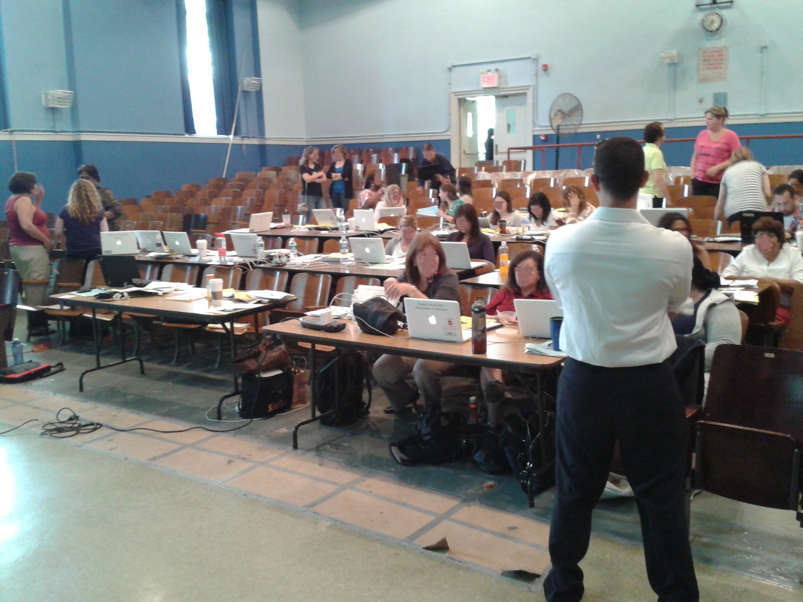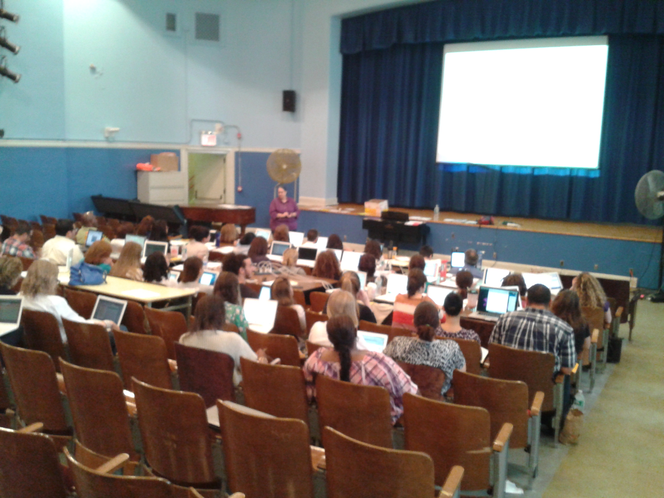 I was given opportunities to set up environments that allowed multiple teachers to learn. Here is the time I set up a school auditorium to mimic a conference room. Complete with tables that had power to plug laptops in.